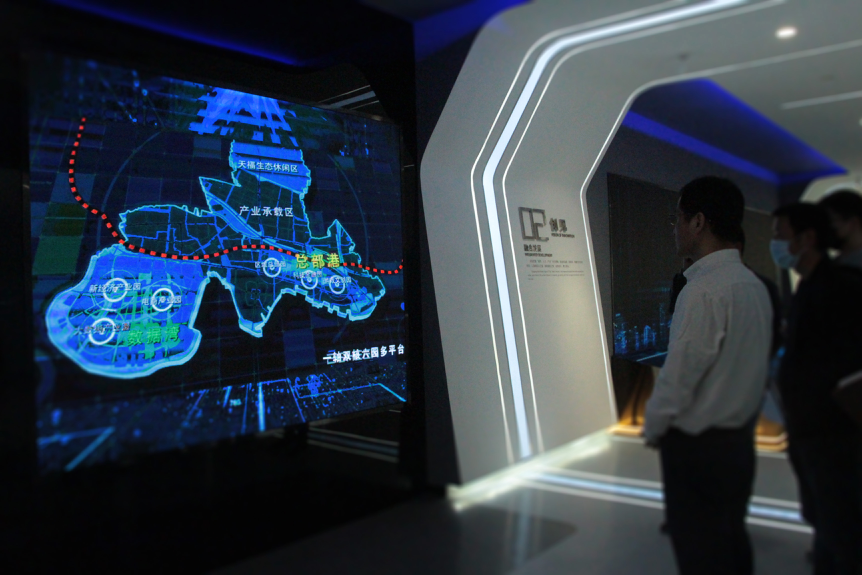 高清大屏播放數字影片,展示花橋產業規劃