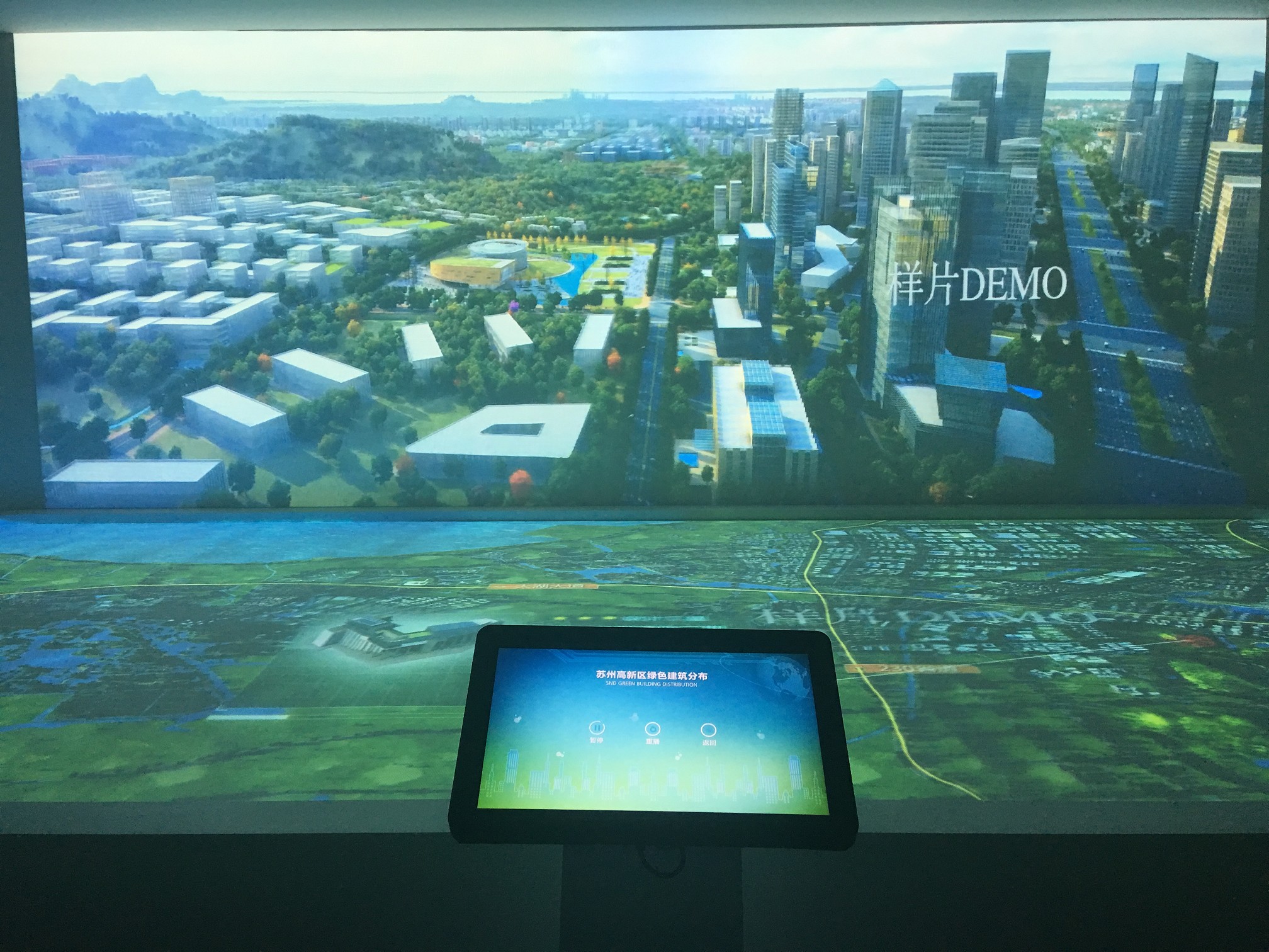 6、投影幕:用來展現沙盤信息,利用投影機將內容打到投影幕上。
