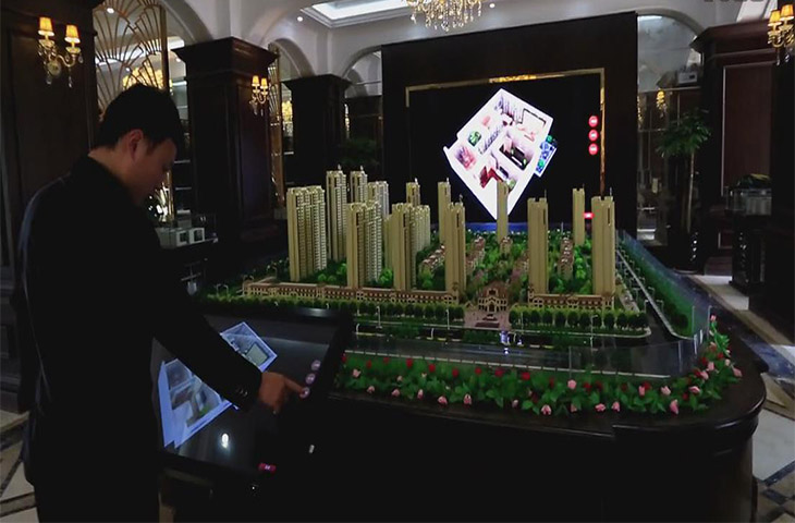 房地產數字沙盤配備有完整的數字多媒體系統,包括有互動系統、燈光控制系統、多媒體設備、動畫宣傳片等,把樓盤的詳細信息展現給客戶。如樓盤周邊環境、景觀、商業配套等,利用數字技術把更真實的場景展現給客戶,是一種全新的呈現方式,讓客戶感覺身臨其境,更加人性化,更貼近消費者心理。