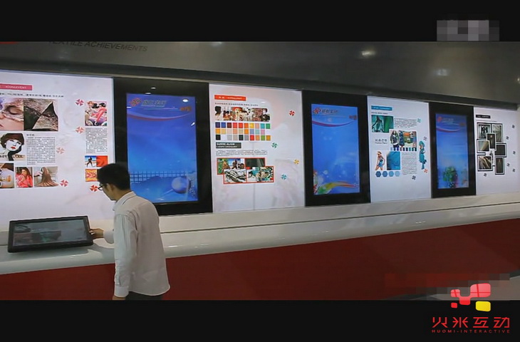 互動滑動屏是利用定制系統(tǒng)對動態(tài)目標實現(xiàn)自動連續(xù),動態(tài)展示墻打破了傳統(tǒng)電子展項的束縛,不需人為控制,一旦參觀者走近屏幕,大屏幕系統(tǒng)立刻開啟并跟隨人的移動而移動。