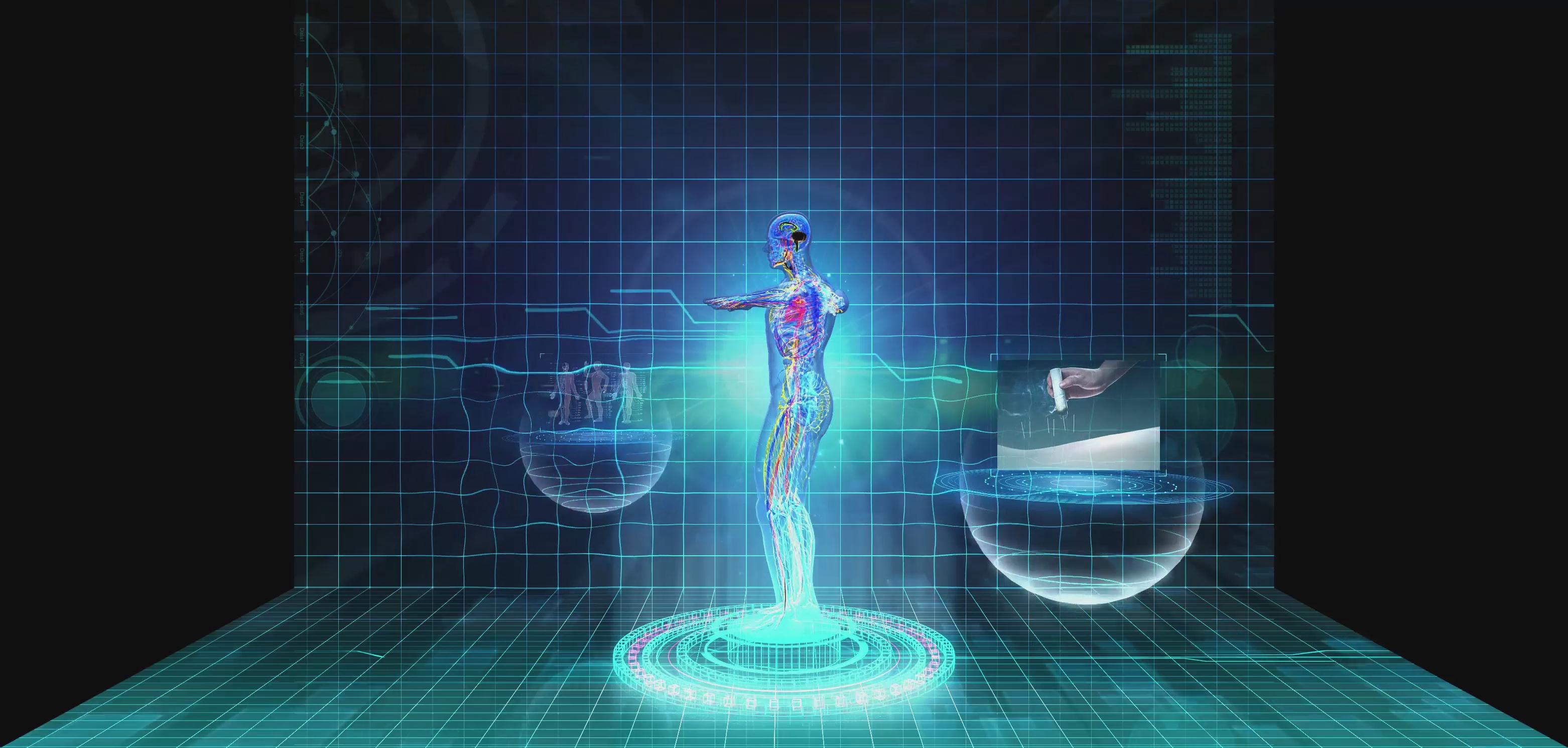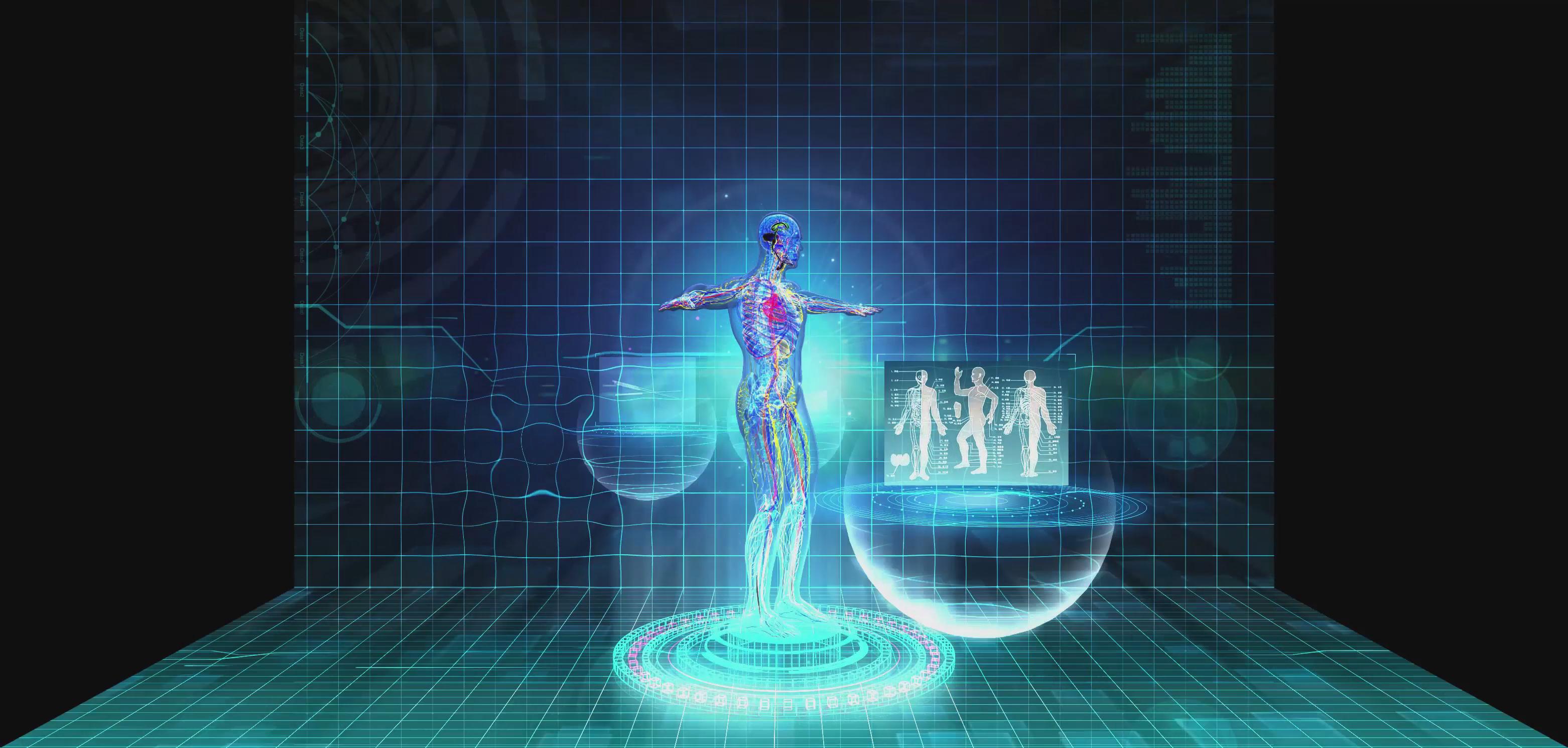 上海大世界折幕投影針灸三維影片