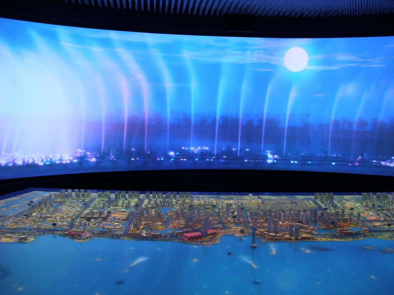 2、沉浸式數字沙盤在城市規劃館中能夠呈現出的信息量很大,視覺效果也很震撼。